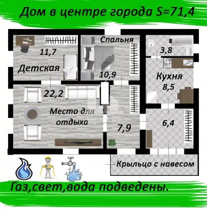 Продается дом, 71.4 кв.м., /1 эт